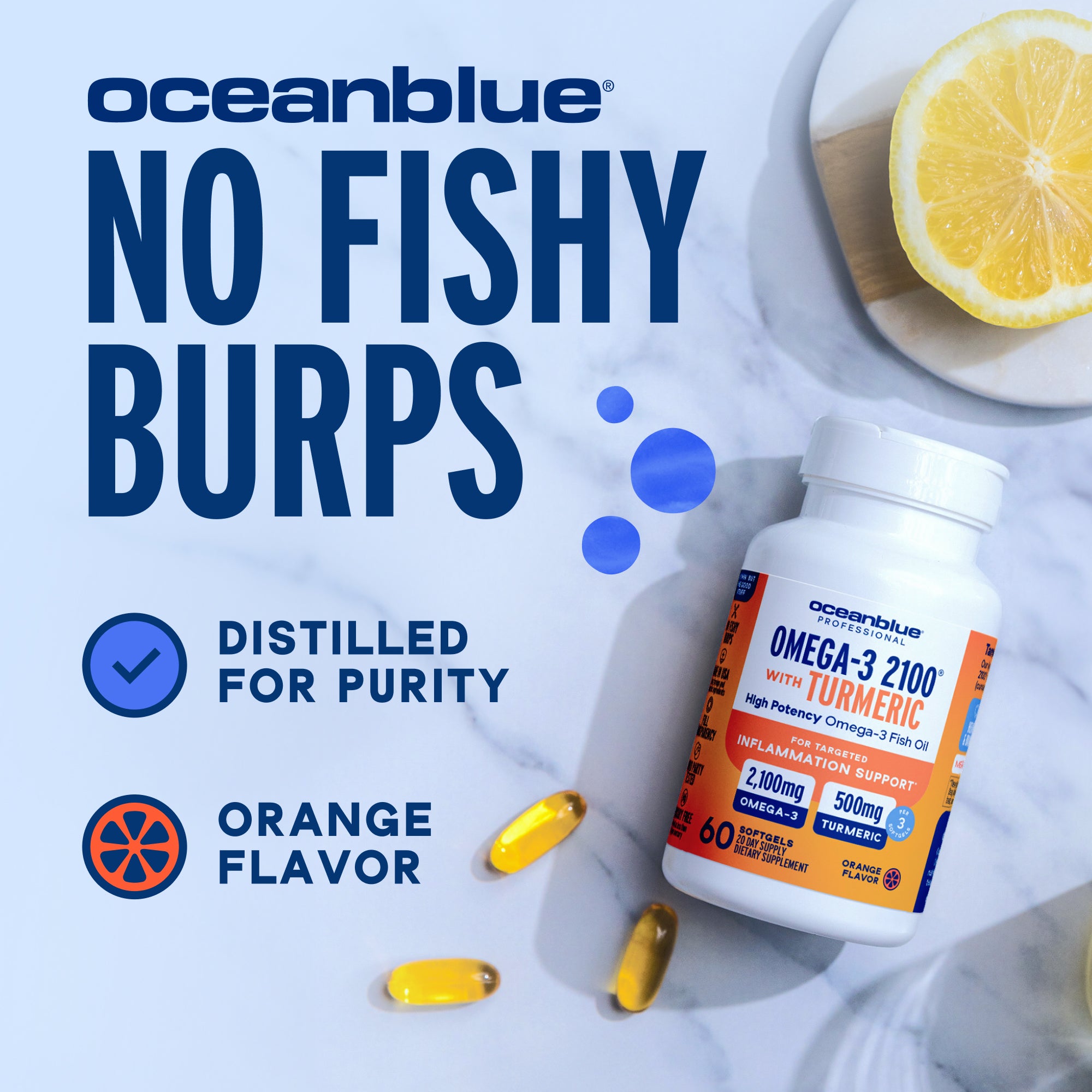 Our sustainably sourced fish oils are distilled 27 times for a neutral flavor—unlike *the other* fish oil caps that made you burp all day—ew.
